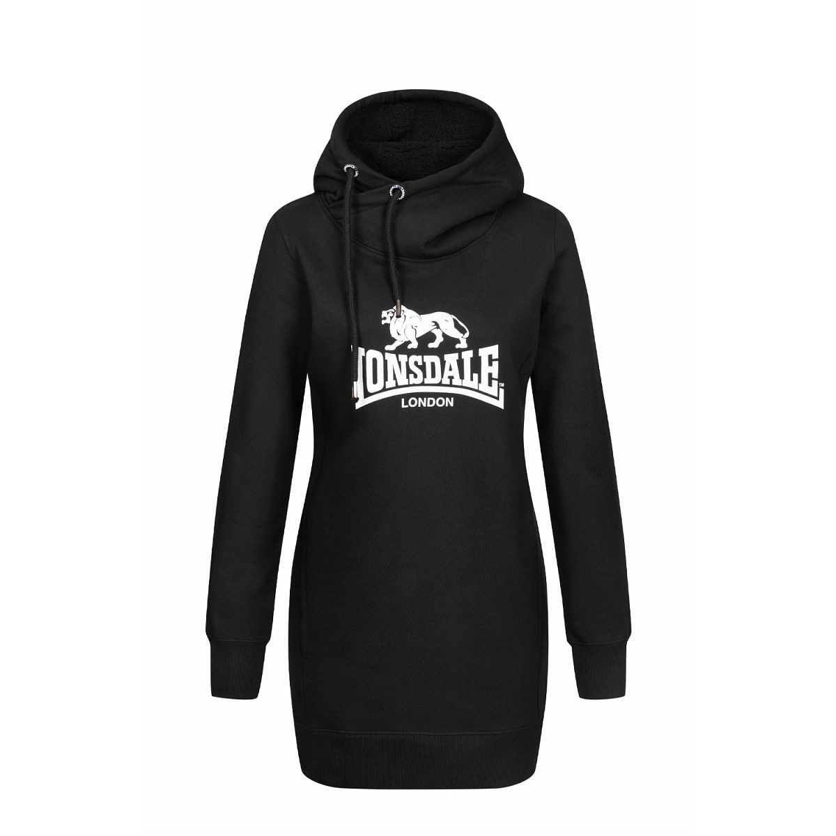 Der weite Schnitt sorgt für Komfort und Bewegungsfreiheit, wodurch das Lonsdale Sweatkleid praktisch für die Freizeit und lässige Looks ist. Das Frontlogo verleiht einen markanten sportlichen Akzent, während die Kapuze mit Kordelzug eine anpassbare Passform ermöglicht.