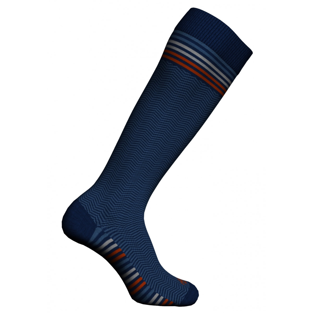 Le calze lunghe da uomo in caldo cotone di Zenzerò combinano comfort e stile: design a righe geometriche, vestibilità taglia unica 40/45 ed elastico che mantiene la calza in posizione. Disponibili in più colori.