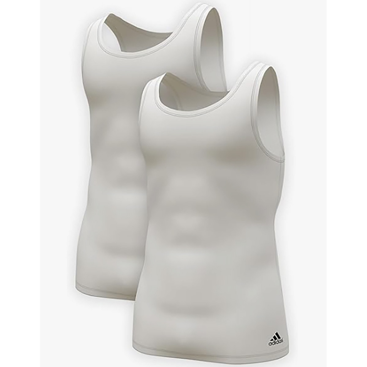 Confezione da 2 canotte Adidas in cotone elasticizzato (95% cotone, 5% elastan) con tessuto traspirante e anti-odore, pensate per garantire comfort e freschezza ogni giorno.